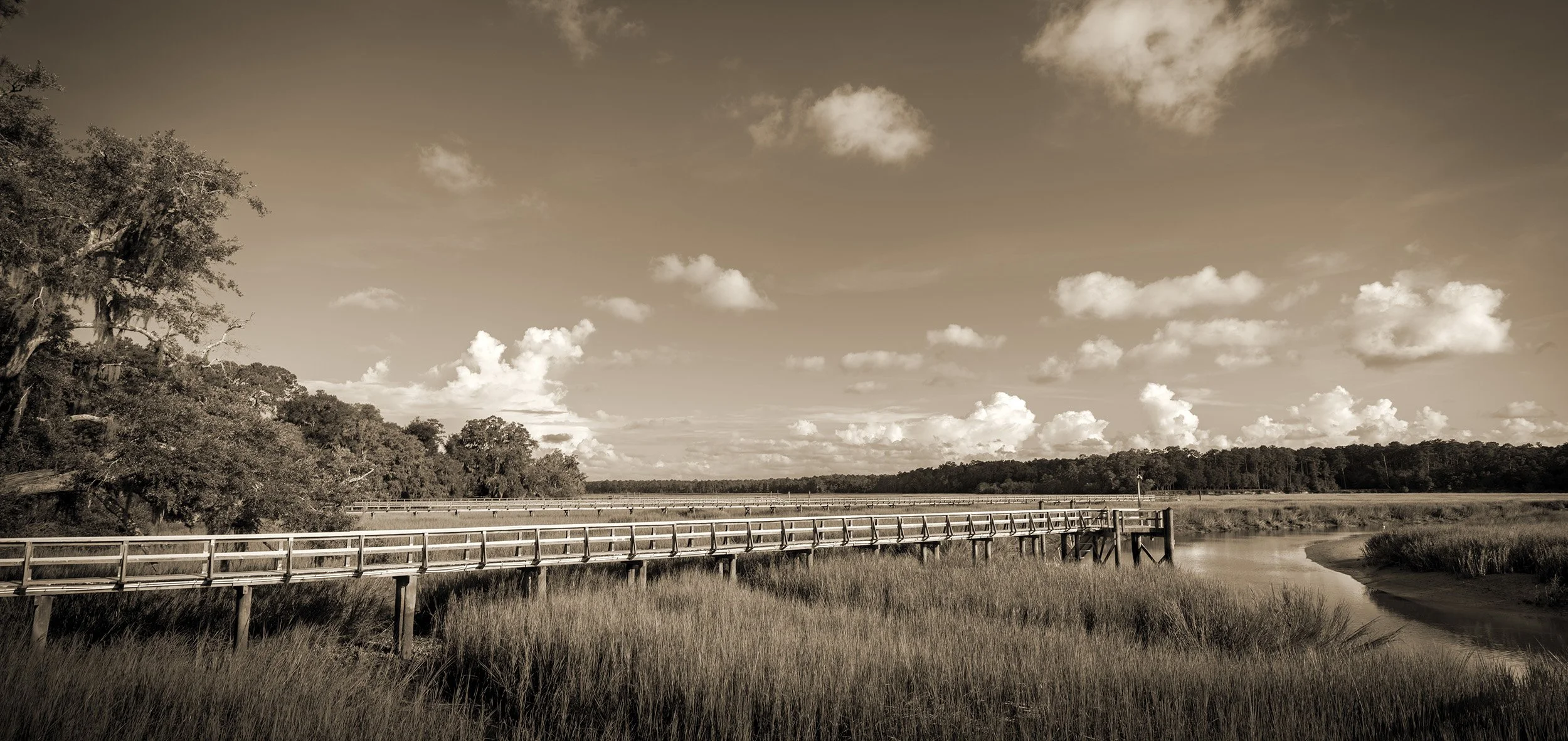 For more than fifty years, I have lived within the rhythm of these tides. My photographs are not records of what is here, but expressions of how it feels to stand in these places: the smell of the marsh in the air, the shadows of oak branches shifting in the wind, the quiet pull of water returning to the sea. Each is an invitation to see the coast not only as it is, but as it has always been — eternal in its change.